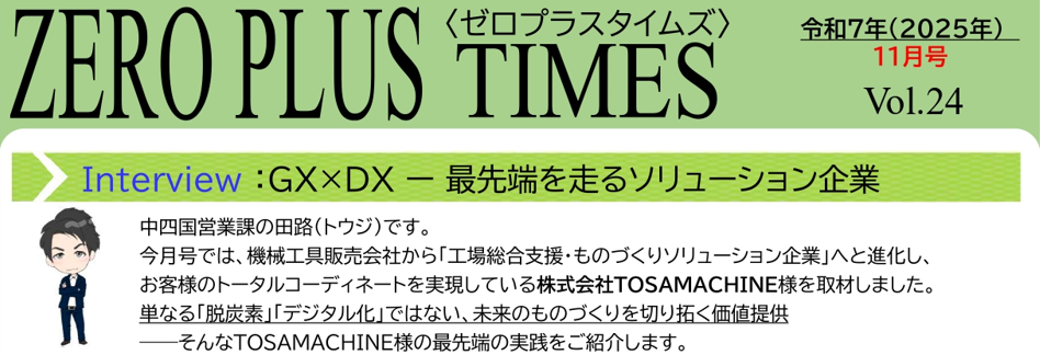 この度、当社が推進する「GX(グリーントランスフォーメーション)とDX(デジタルトランスフォーメーション)」の取り組みについて、中小企業版SBT(Science Based Targets)取得について、コンサルティングをご担当いただいた株式会社ゼロプラス様の会報誌『ZERO PLUS TIMES』Vol.24(11月号)**にて、当社代表のインタビュー記事が掲載されました。