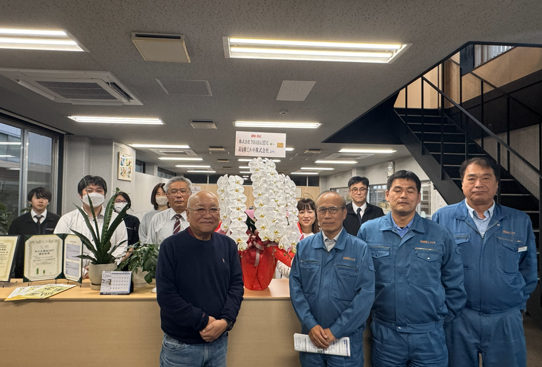 今年の3月から着手しておりました、35年ぶりとなる社屋のリノベーション(先行投資)が無事に完成したので、お隣であり主力お客様高知精工メッキさんの岩崎社長に「是非見に来てください・・」ねとお願いしたところ本日、岩崎社長、岩崎専務、葛岡常務の皆様がお越しくださいました。立派な胡蝶蘭まで賜り、私共にとってこれ以上ない最高のクリスマスプレゼントとなりました。
