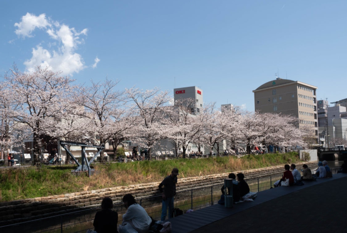 4月1日(月)青空のもと、高知市中心街にある堀川沿いの桜並木で撮影してきました。