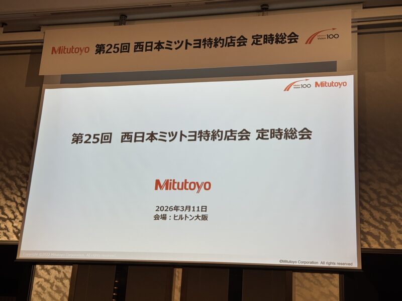2026年3月11日、大阪ヒルトンホテルにて「第25回西日本ミツトヨ特約店会定時総会」が開催されました。会場には200人近い参加者が集まり、非常に盛大かつ活気ある会合となりました。